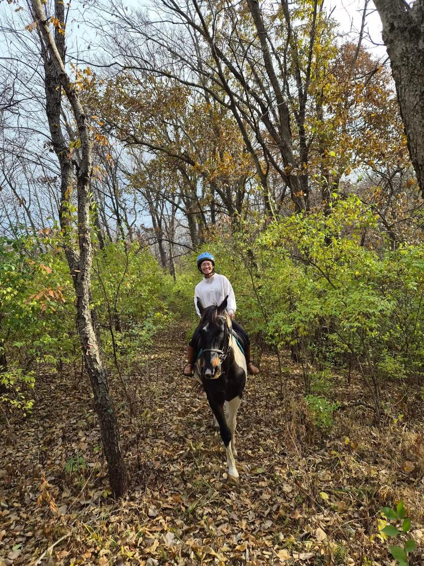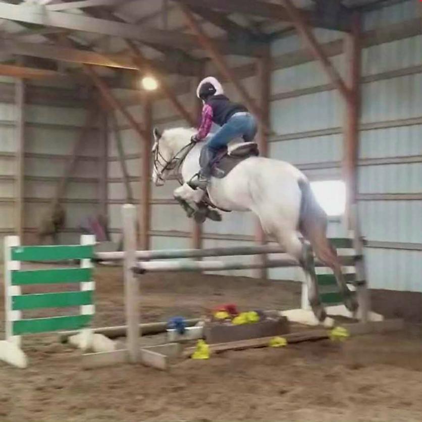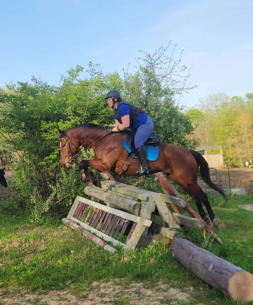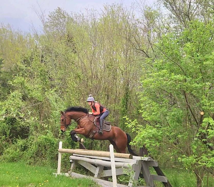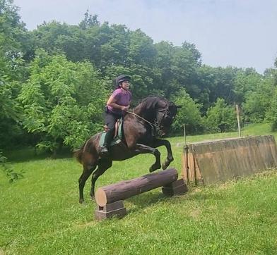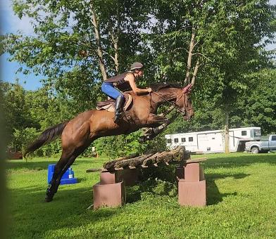 Trainer Amy Nelson jumping in our xc field. Many obstacles not pictured. Please come out for a tour!